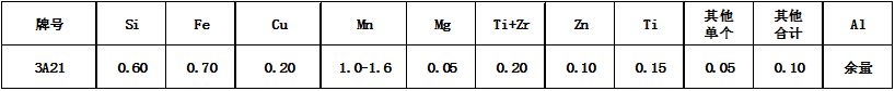 3A21鋁板為Al-Mn系合金,3A21鋁板是一種應用廣泛的防銹鋁,強度不高,不能熱處理強化,故常采用冷加工方法來提高其力學性能;在退火狀態下有高的塑性,在半冷作硬化時塑性尚好,冷作硬化時塑性低,耐蝕性好,焊接性良好,可切削性能不良。